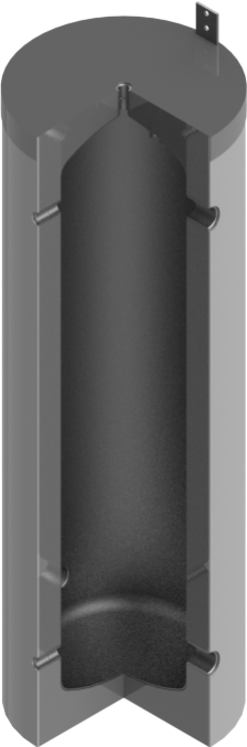 Per il riscaldamento e il rinfresco. Realizzati in acciaio di alta qualità, secondo la norma EN 10025:2019. Possibilità di fissaggio a parete. Volume: 51 l. Ø isolato: 400 mm Altezza isolata: 900 mm Altezza di ribaltamento: 1000 mm Peso: 20 kg Pressione di esercizio: 3 bar Pressione di prova: 4,5 bar Temperatura di esercizio: 18 °C - 95 °C Isolamento fisso in schiuma PUR solidificata da 50 mm Rivestimento in similpelle da 5 mm con chiusura a cerniera Colore: grigio-argento Classe di efficienza energetica: B Garanzia: 3 anni Assemblato in Svizzera